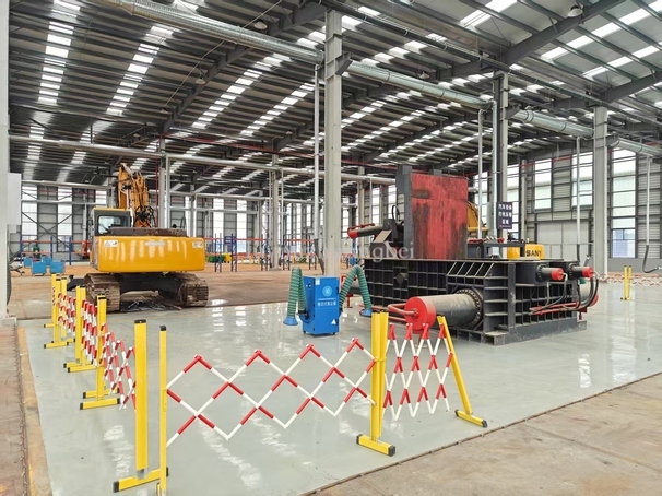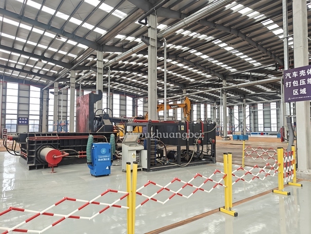 客戶老板汽車拆解線搭配的金屬打包機使用