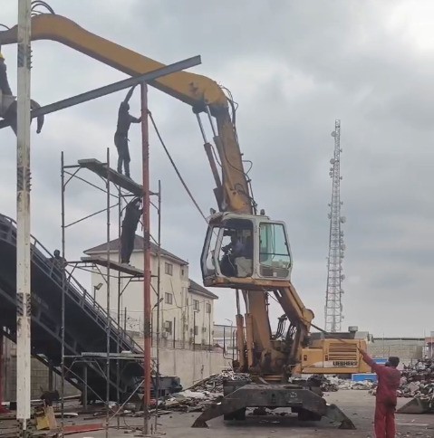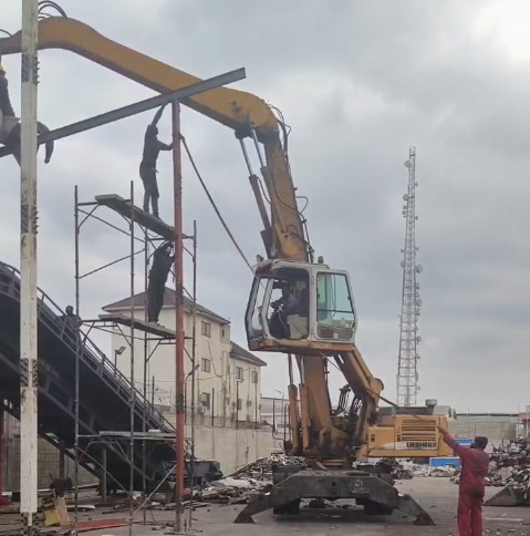 壯觀!破碎機的搭建像是一場驚心動魄的雜技表演。