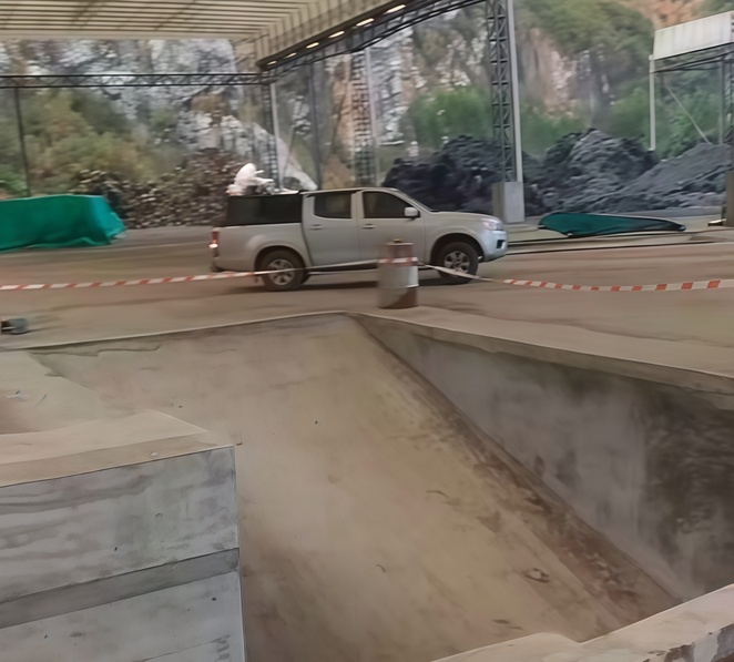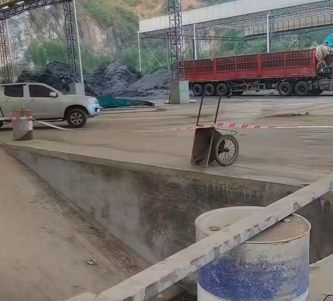 場地符合開展安裝工作,正在進行路友破碎機卸車工作。