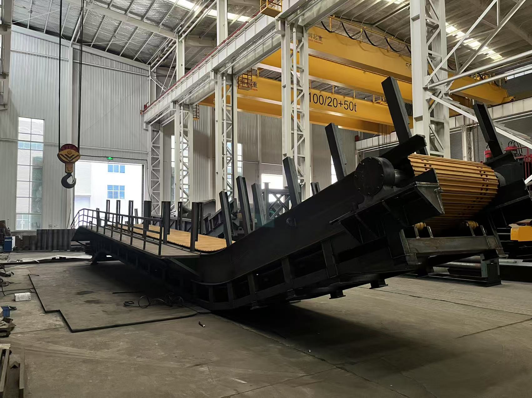承載能力:履帶行走機(jī)構(gòu)的設(shè)計(jì)使得設(shè)備能夠承受較大的載重量,適用于各種重型物料的搬運(yùn)。